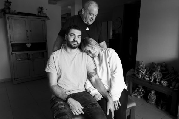 Rami Shani, 65, rettete mit seinem Auto 35 junge Menschen beim Musikfestival in Re’im. Unter Beschuss fahrend, rettete er das Leben von Maor Morchiano (29) und seiner Freundin Shani Katz (28). Das Paar verlor fünf Freunde, mit denen sie zum Festival gekommen waren. Für dieses Porträt trafen sie Rami zum ersten Mal. „Er ist jetzt unser Engel – er hat uns nicht nur einmal, sondern zweimal gerettet. Wir leben wegen ihm.“ Modi’in, Israel, 2024